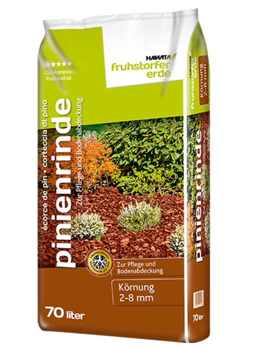 Hawita-Fruhstorfer pine bark is a high-quality, natural ground cover for the decorative covering of beds, planters and graves. The attractive reddish-brown bark gives every planting area a well-kept, elegant appearance and particularly highlights the plants. At the same time, it improves the microclimate in the root area: the soil dries out more slowly, is protected from strong heat and cold, and remains permanently loose and well-aerated.